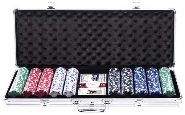 구성 칩 500PCS, 고급 하드케이스 (잠금장치), 주사위 5개, 페이퍼 카드 ( 2 set ), 딜러 버튼1개